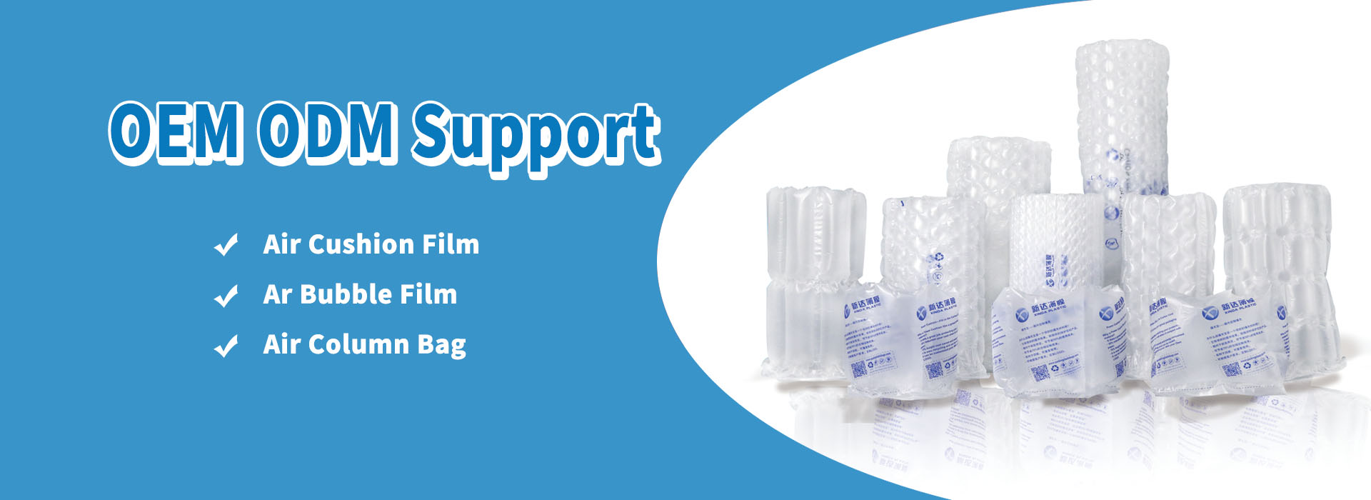 JIANGYIN CHANGJING XINDA PLASTIC FILM CO.,LTD founded in 1998, which is a professional manufacturer in PE films and plastic packaging bags. XINDA occupies 10,000 square meter including non-dust workshop, has 20 years experience, and passed certification as ISO, CE, SGS. in order to integrate with the world market, we established a new company in Shanghai Free Trade Zone, this is why we keep superior quality and competitive offers for global valued customers. Our main products cover all kinds of plastic bags and packing films in daily life, The Air Cushion Film Roll, The Form-Fill-Seal (FFS BAG) And also food Vacuum packaging bags...